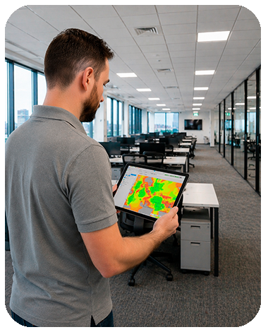 Realizamos o estudo do ambiente, avaliamos interferências, cobertura, densidade e definimos a melhor estratégia de implantação.